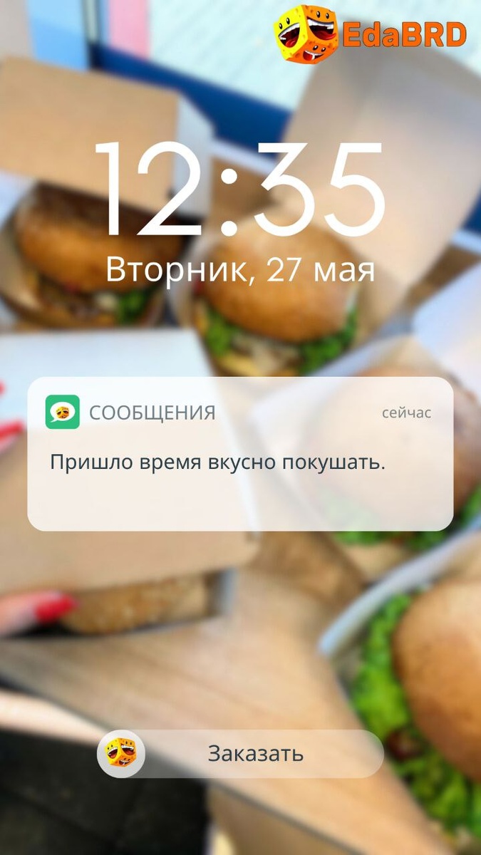 Посмотрите на часы! 🕐 Видите, пришло время покушать.😋 Все заботы - покупку продуктов, готовку и доставку - мы берём на себя. Вам остаётся только сделать заказ и наслаждаться 🥰 любимыми блюдами. Скорее оформляйте ⬇️⬇️⬇️⬇️⬇️⬇️⬇️ 📱По телефону: +7-990-216-64-58 (+7Телеком) +7-990-183-65-87 (Миртелеком) 🌐Через наш сайт: https://edabrd.uds.app ✈️Телеграм: @edabrd1 МЫ ЖДЁМ ВАС В ГОСТИ! 📍ул. Дюмина (Итальянская), 50–В (Кафе"Sushi BRD") С 10:00 до 21:00 📍ул. Кирова (Европейская), 54–Б (Кафе "Диана") С 10:00 до 22:00 📍пр. Восточный (Пролетарский), 157 (Кафе - бар "Атмосфера") С 10:00 до 22:00