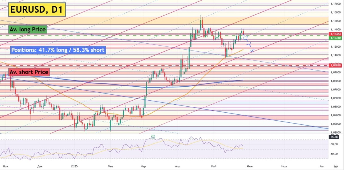 🇪🇺🇺🇸📉EURUSD готов к коррекции? Как я писал вчера, позиция ФРС не смотря на призывы Трампа остается выжидательной. Кашкари (президент ФРБ Миннеаполиса) сегодня дал повторный комментарий, где повторил вчерашние тезисы. Хотя он и добавил в этот раз, что среди политиков ФРС ведутся оживлённые дебаты о том, стоит ли учитывать инфляционные последствия введения тарифов - но снова подтвердил, что аргументов в пользу удержания ставки все же больше. Кстати, вероятность снижения ставки ФРС в сентябре так же снизилась за последние сутки с 76% до 69% - как я и предполагал вчера. А вот в ЕС сегодня были опубликованы данные по ИПЦ Франции, которые оказались ниже ожиданий. Месячный ИПЦ оказался отрицательным (-0,1%), а годовой показатель опустился до отметки +0,7%. Член правления ЕЦБ Франсуа Виллеруа назвал эти данные "положительным показателем" и добавил, что нормализация политики в еврозоне, вероятно, ещё не завершена и, скорее всего, мы увидим это на нашей встрече на следующей неделе. Таким о