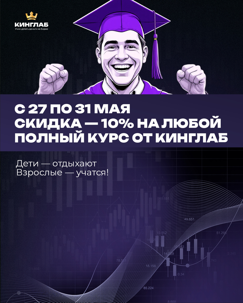 🔥 С сегодняшнего дня по 31 мая скидка — 10% на любой полный курс по промокоду: MAY2025 Ловили себя на мысли: "Вот бы взять, и с нуля нормально во всем разобраться… Без инфошума, воды, без “торгуй — и все будет”? А еще лучше — чтобы рядом был человек, который сам через это прошел. Чтобы не просто учиться, а торговать в команде, с фидбэком, с поддержкой и уверенностью, что все делаешь правильно. Если вы искали такой старт — это он. 📌 Полный курс от Академии Кинглаб по скальпингу: на крипте или на Мосбирже — выбирайте сами Крипта - https://clck.ru/3DNDVb