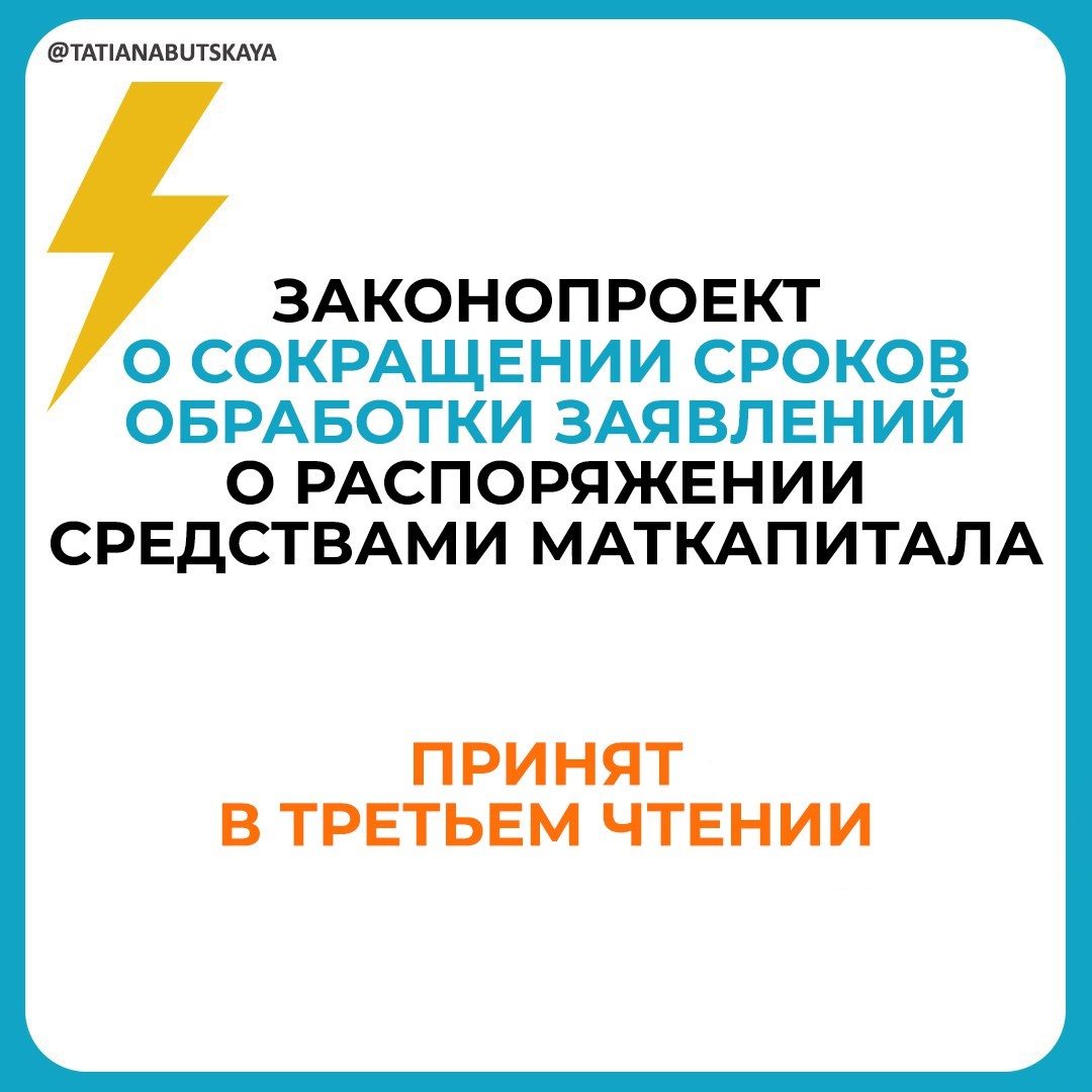 ⚡️Законопроект принят Госдумой в третьем чтении Документом предполагается, что ведомства должны будут реагировать на запросы граждан в течение 5 рабочих дней вместо 10. Законопроектом также предлагаются изменения в части перехода права на дополнительные меры господдержки правопреемникам (отцу, детям в равных долях) в беззаявительном порядке в случае прекращения у владельца сертификата права на дополнительные меры господдержки из-за смерти, лишения или ограничения родительских прав. 👉 Закон вступит в силу со дня опубликования.