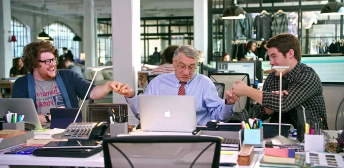 Прекрасный пример показан в фильме «Стажер» (2015 г.). В киноленте Роберт Де Ниро в роли Бена Уитакера попадает в компанию с исключительно молодыми сотрудниками. И в ходе сюжета молодые люди начинают переосмысливать подход к жизни, становясь более зрелыми. Это касается и внешнего вида, и поступков.