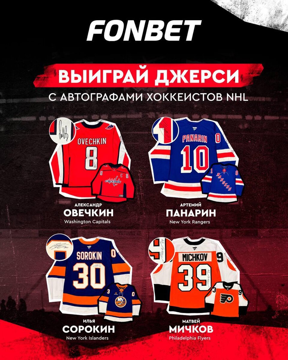 В ответ на пост 🎯 Сделай шаг к мечте — выиграй джерси с автографами звёзд НХЛ! Ты любишь хоккей? Мечтал когда-нибудь прикоснуться к легенде? Сейчас — твой момент. 🏒 Овечкин. Панарин. Звёзды, которые пишут историю. Андрей Аршавин и Никита Филатов привезли из Северной Америки эксклюзивные джерси с их автографами — и ты можешь выиграть один из них. Как участвовать: - Перейди на сайт 👉 fnbt.link/7adbf - Выбери желаемое джерси и укажи свои контакты - Сделай прогноз на любое хоккейное событие от 1000₽ Введи промокод НХЛ25 — и получи фрибет до 15 000₽ (для новых клиентов) 🗓 Итоги — 15 июня. Победителей объявим в Telegram-канале FONBET и на сайте: fnbt.link/7adbf ⬇️ Чат #нхл #nhl