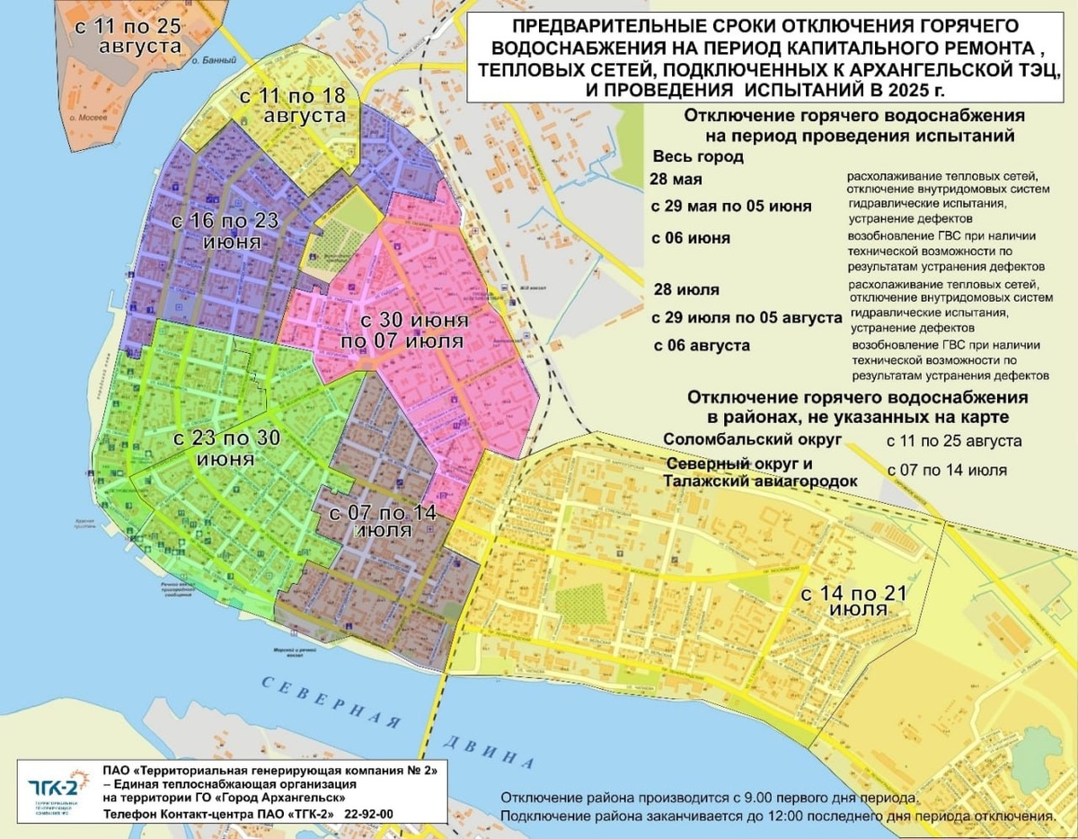 💦В Архангельске назвали сроки проведения летних гидравлических испытаний теплосетей Завтра в Архангельске отключат горячее водоснабжение для проведения гидравлических испытаний тепловых сетей. Первый этап пройдёт с 29 мая по 5 июня. Части абонентов горячую воду вернут уже 6 июня, а остальным – после устранения дефектов. С 29 июля по 5 августа планируется проведение второго этапа гидравлических испытаний. Летом в округах Архангельска пройдут плановые ремонты сетей.