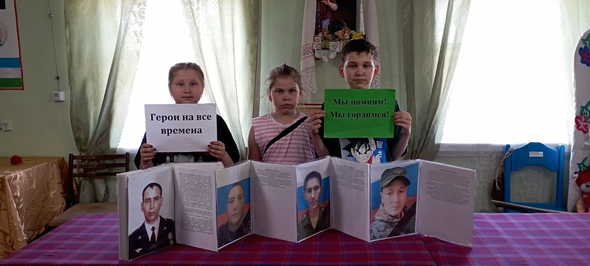 Бурай ёросысь Алтау библиотекаын нылпиослы "Герои на все времена" тематической час радъязы. Фото: Алтаевская библиотека Бураевского района