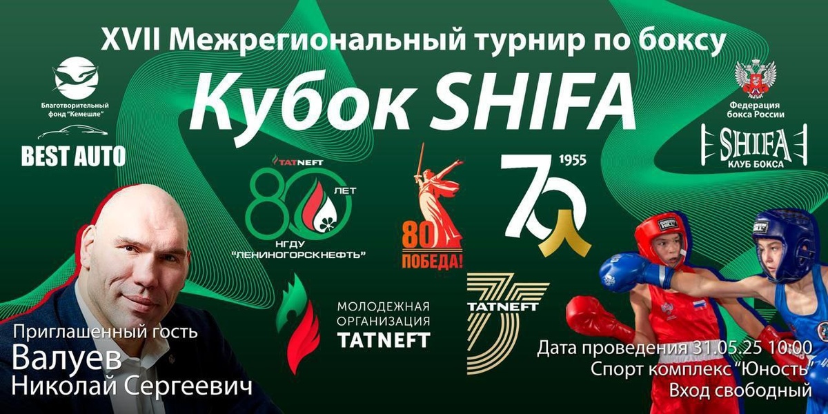 XVII Межрегиональный турнир по боксу. Кубок SHIFA (6+) 31 мая, с 10:00, в спорт комплексе Юность. Вход свободный. ЗАВЕРШЕНО Приглашённый гость Валуев Николай Сергеевич. 🎟 Афиша Лениногорск. ЛенскГоу! Подписаться | Голосовать #АфишаЛениногорск #ЛенскГоу #Лениногорск #31май25 #май2025