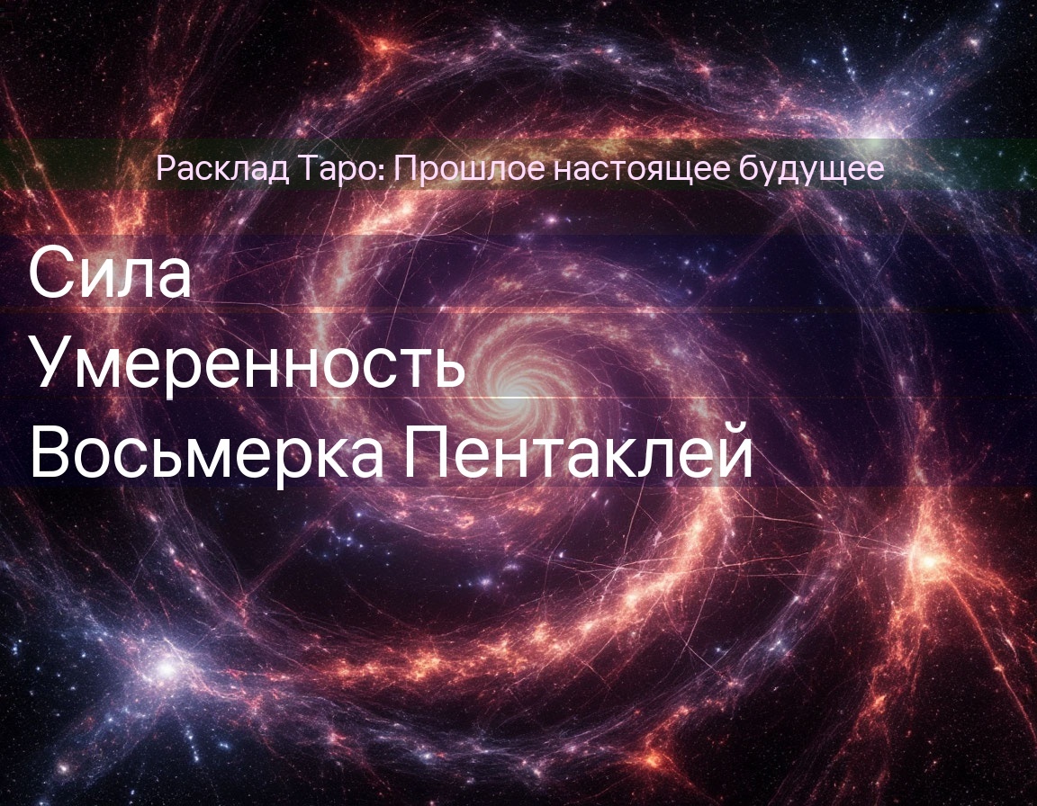 Астрологический фон: Сила связана со Львом (огонь, творчество, лидерство), Умеренность — с Водолеем (воздух, инновации, баланс), а Восьмерка Пентаклей — с Девой (земля, анализ, мастерство). Эти энергии создают уникальный коктейль, где творческая страсть сталкивается с необходимостью дисциплины и поиска равновесия.