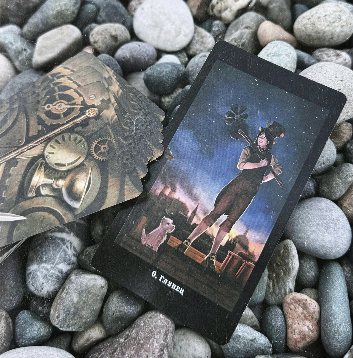 «Отсюда все кажется немного волшебным» Как и все Арканы в колоде Таро, символизирующие начало и завершение, карта Глупец (Шут, Дурак) полна противоречий. Наш Глупец, изображенный на карте в облике трубочиста, обозначает начало и невинность, еще не имеющие жизненного опыта и мудрости во всяком случае такой мудрости в общепринятом понимании этого слова. На него смотрят снисходительно и иногда посмеиваются над ним. Но наш трубочист, как и другие Глупцы в колодах Таро, находится над миром и смотрит на нашу реальность с другого плана бытия.