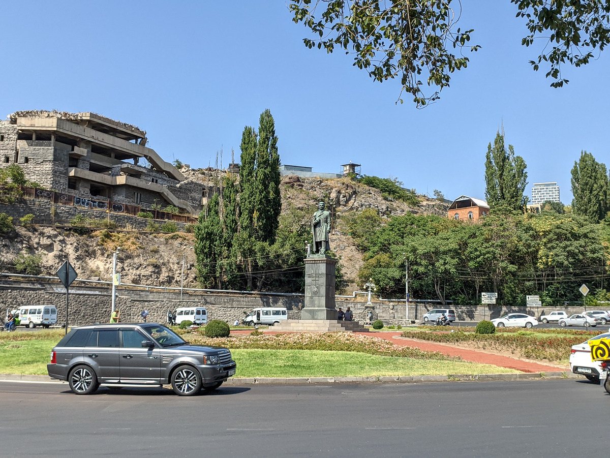 Продолжаем путешествие по самой ереванской улице столицы Армении У дома № 34 в 2015 году была установлена скульптурная группа «Запоздалая фотография». Её авторы: скульптор Давид Минасян и архитектор Левон Игитян. В композиции увековечены всенародные любимцы, великие дудукисты: Дживан Гаспарян, Левон Мадоян и Ваче Овсепян. Три мастера, представившие миру армянский дудук. Пересекаем улицу Московян и выходим к Кольцевому бульвару. Здесь установлена скульптура Рузан Кюркчян «Возрождение». Она была создана в 1973 году. На противоположной стороне улицы в 1965 году был установлен памятник поэту Аветику Исаакяну. Аветик Исаакян (1875–1957) – великий армянский поэт, прозаик, общественный деятель, академик Академии наук Армении. Авторы памятника: скульптор Саркис Багдасарян и архитектор Липарит Садоян. Чуть дальше – у мемориального дома-музея расположен обелиск писателю Деренику Демирчяну. Подходим к улице Корюна. Перед нами здание Ереванского государственного медицинского университета име