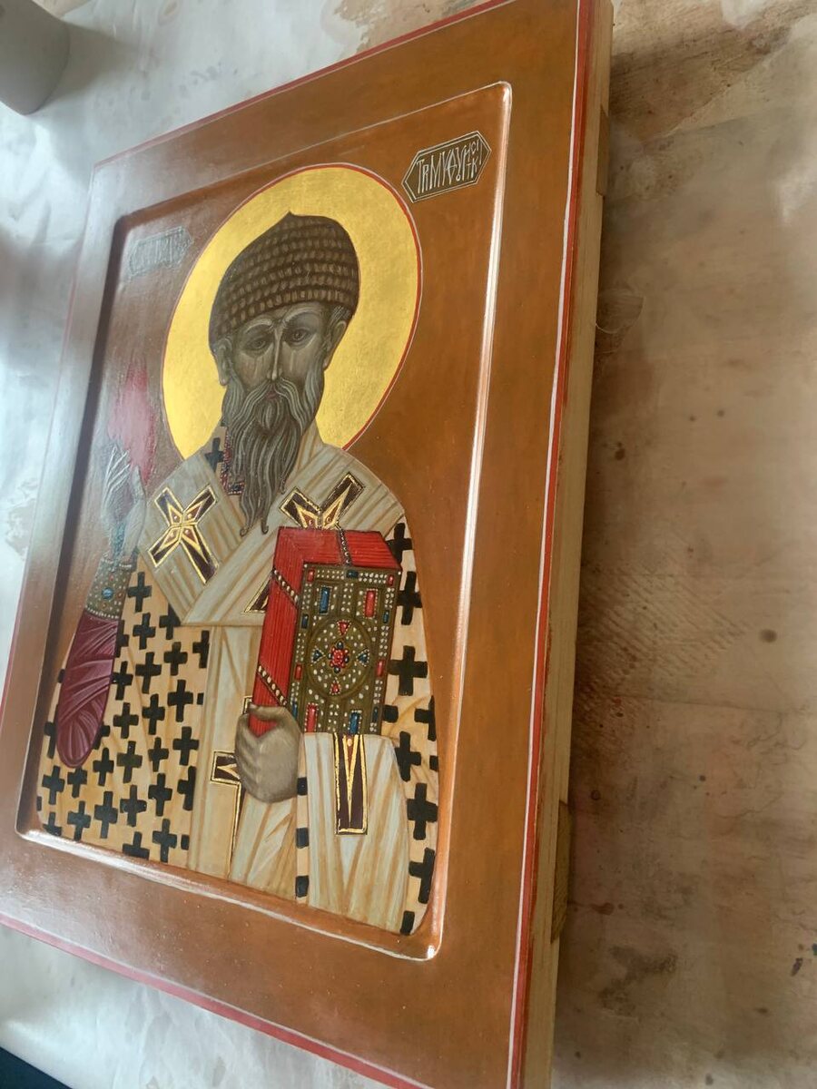 Сегодня закончила икону Св.Спиридона Тримифунтского ❤️ Слава Богу за все !