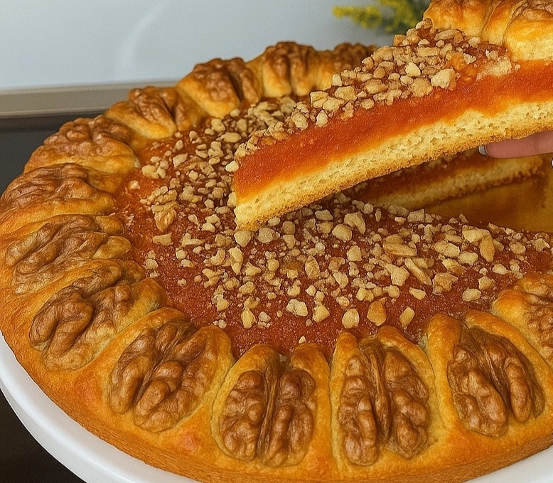1. Замочить курагу в кипятке, затем измельчить в мясорубке. Добавить сахар и немного воды для сочности. 2. В миске соединить яйцо, сахар, сливочное масло, сметану, соль, ванильный сахар. Перемешать. 3. Всыпать муку с разрыхлителем, замесить мягкое тесто. Дать ему отдохнуть в холодильнике 20 минут. 4. Раскатать тесто в круг, сделать надрезы, выложить начинку, сформировать узор. 5. Смазать желтком с молоком, в каждый кармашек положить грецкий орех, посыпать рублеными орехами. 6. Выпекать при 180°C около 30 минут. Этот пирог с курагой и орешками просто создан для уютного чаепития! Нежное тесто, сладкая начинка и аромат ванили — идеальное сочетание. Попробуйте: готовить легко, а вкус — потрясающий! Всем мира, добра, красоты!