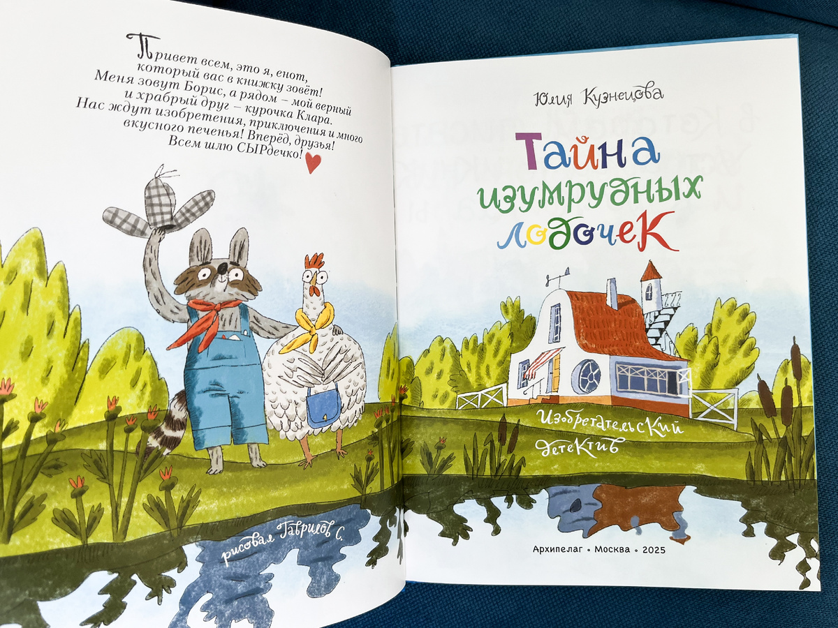 Обсуждение книг с детьми – важная часть осознанного чтения. Оно не только помогает лучше запомнить сюжет, но и учит ребёнка задавать вопросы, формулировать свои мысли, сравнивать, размышлять и высказывать мнение. Особенно эффективно это работает с младшими школьниками, которые уже могут строить логические связи и рассуждать, но всё ещё нуждаются в примерах и поддержке со стороны взрослого. Отличной книгой для такого совместного чтения и обсуждения станет детектив Юлии Кузнецовой «Боря и Клара. Тайна изумрудных лодочек». О книге В центре истории енот Боря и его подруга курочка Клара. Вместе они оказываются втянутыми в захватывающее расследование, полное тайн, ложных следов, неожиданных находок и курьёзных ситуаций. Книга написана лёгким, живым языком, удерживать внимание ребёнка помогают также яркие коллажные иллюстрации, динамичный сюжет, загадки и добрый юмор. Как книга «Боря и Клара. Тайна изумрудных лодочек» способствует развитию ребёнка? Как можно работать с этой книгой? 1. Обсужде
