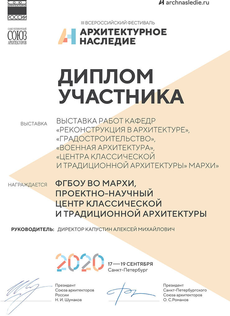 Выставка "АРХИТЕКТУРНОЕ НАСЛЕДИЕ 2020", в рамках которого были выставлены работы Центра классической и традиционной архитектуры МАРХИ