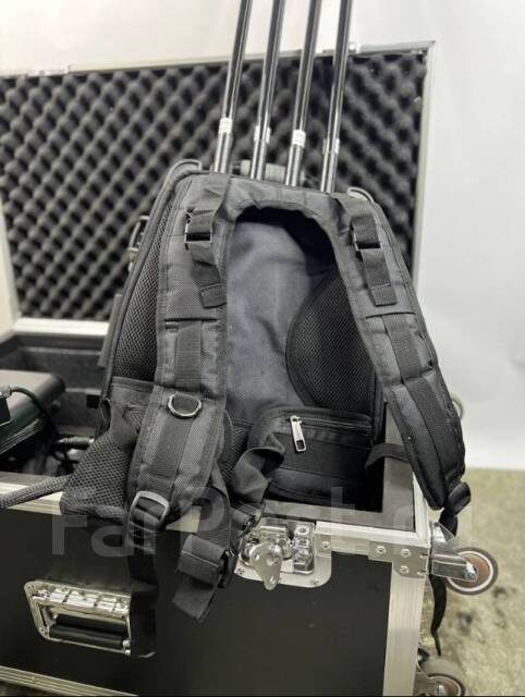 Такая аппаратура выполнена в форме рюкзака и в основном используется для защиты частной собственности от слежения и видеосъемки с дрона. Подавитель позволяет заглушить сигнал с помощью специальных всенаправленных антенн. После блокировки оператор БПЛА уже не может контролировать видео, которое передает устройство.