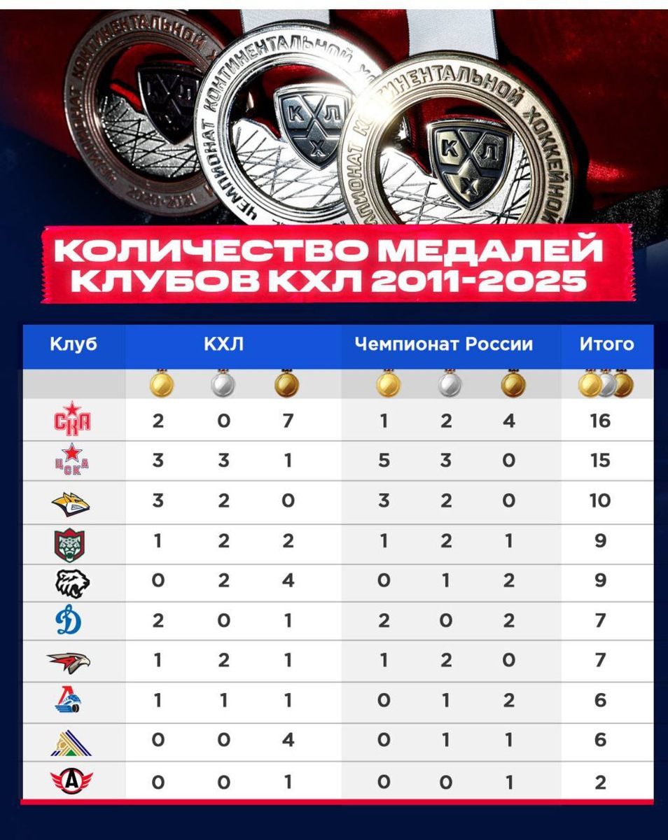 Ротенберг выложил таблицу с медалями СКА с 2011 года, где клуб идет 1-м, опережая ЦСКА: «Благодарю болельщиков, «Газпром» и жителей Петербурга»