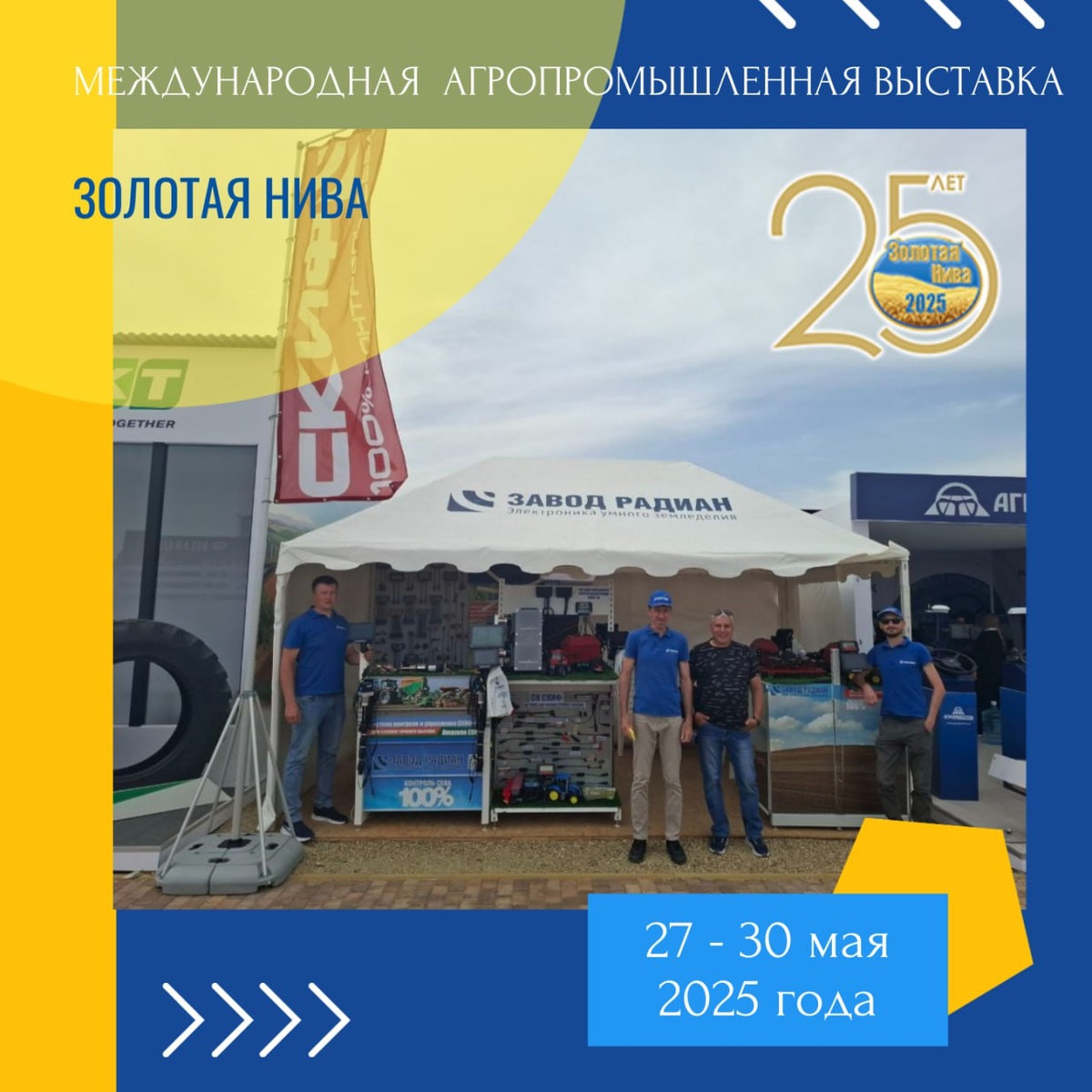 Уважаемые партнёры и коллеги!!! УЖЕ СЕГОДНЯ АО "Завод "Радиан" приглашает вас посетить наш стенд на крупнейшей агропромышленной выставке «ЗОЛОТАЯ НИВА 2025». 📍 Мы будем рады видеть вас в 1-м Блоке, Сектор 6. На стенде вас ждут: ❇️ системы контроля высева и управления СКИФ для различных моделей посевных комплексов, ❇️ электронные датчики различного назначения и применения ❇️ консультации специалистов ❇️ приятные бонусы для постоянных клиентов До встречи на выставке! 🤝🤝🤝 С уважением, команда АО "Завод "РАДИАН"!