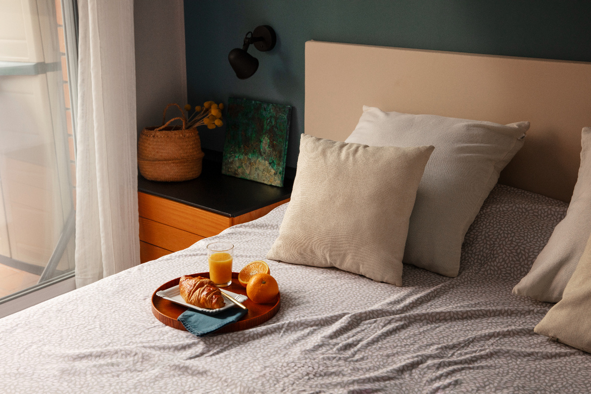 Плотные шторы, ковры, постельное бельё из натуральных тканей — всё это влияет на восприятие комнаты. Теплые текстуры приглушают звуки и делают атмосферу более спокойной.