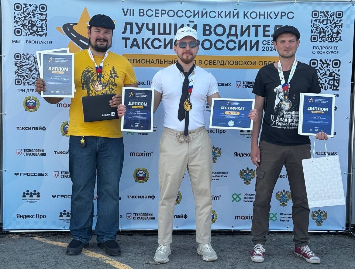 🚕 В Екатеринбурге выбрали лучшего водителя такси 27 мая в Свердловской области прошёл региональный этап Всероссийского конкурса «Лучший водитель такси в России». Спасибо всем водителям за борьбу и достойные результаты! Поздравляем победителей: 🥇 Артем Ивахненко (79 баллов) 🥈 Иван Яблоков (77 баллов) 🥉 Максим Дудкин (68 баллов) Победители получили призы от организаторов — Общественного Совета по развитию такси: 15 000 рублей — за первое, 10 000 рублей — за второе и 5 000 рублей — за третье место. Артем Ивахненко представит регион в финале Всероссийского конкурса. Свердловская область стала заключительным этапом сезона 24/25, впереди только финал! Региональный этап прошел при поддержке Министерства транспорта и дорожного хозяйства Свердловской области. Благодарим партнеров 🤝 Генеральный партнер — сервис Яндекс Про Официальный партнер — сервис заказа такси Максим Партнер — Технологии Страхования Партнер — Гроссбух: бухгалтер вашего таксопарка Чат лучших. Присоединяйтесь!