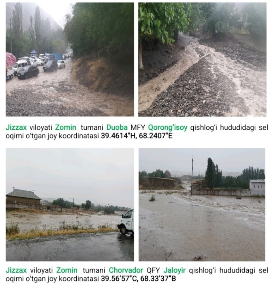 Zomindagi bir qator qishloqlarda kuzatilgan yomg‘irlar natijasida vaqtinchalik sel yo‘llaridan 4 ta sel oqimlari o‘tdi