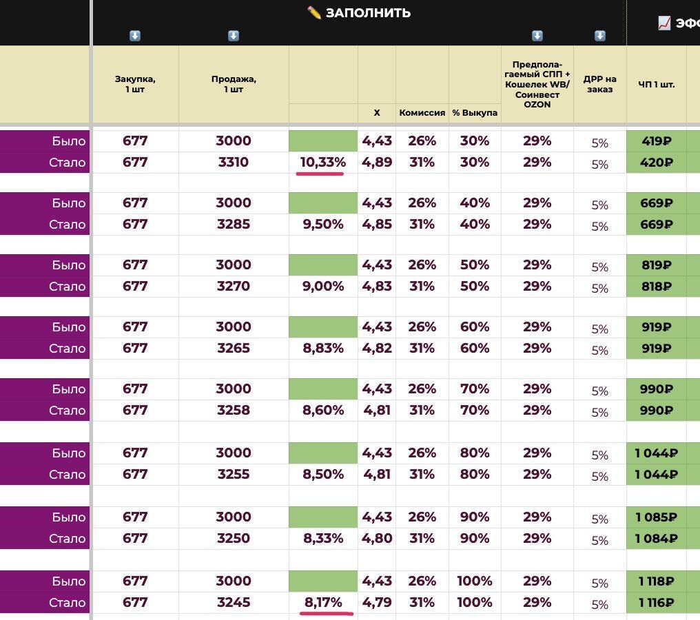 Поднять всем цены надо примерно на 8-10%. (Это уже с учетом незначительного роста CPO на 5-10% и при сохранении прибыли на 1 единицу). СПП пока позволяет перейти на эти цены без особой боли. Хотя сегодня ВБ нам на шмоточки скинул СПП на до 27%)