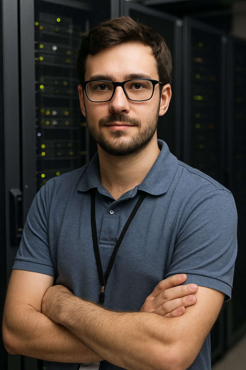 — А вы, случайно, не делаете портреты… ну, как сказать… героические? — смущённо спросила девушка, прокручивая фото на экране. — Конечно делаем!) — ответили мы. — Вот смотрите. Это мой брат. Он работает в дата-центре. Говорит, что его работа скучная: «Хожу между серверов, перезагружаю, чищу логи». Но я знаю — когда все смотрят кино, звонят, работают из дома, кто-то ведь держит этот интернет на плечах, как Атлант. Вот и подумала… может, он не просто админ. Может, он — рыцарь? 📸 На фото — парень в футболке и с бейджем, между стойками серверов. Руки скрещены, взгляд уверенный. Вроде всё просто. Но в этой простоте — сила. 🎨 На картине: Он в доспехах, с мечом, а за спиной — башни серверов, мерцающих зелёными огоньками. Плащ цвета ржавой меди. Лицо спокойно, как у того, кто знает: если что — он справится. Подпись под портретом гласит: «На страже стабильного интернета». 🗣️ Когда она подарила ему картину, он долго молчал. Потом засмеялся: — Ну, теперь хоть бабушка поймёт, чем я занимаюс
