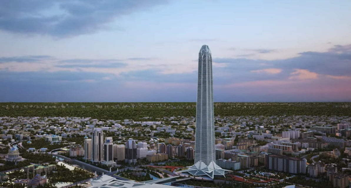 - Высота: 400 метров (~80-90 этажей, что сравнимо с московским «Лахта Центром»)