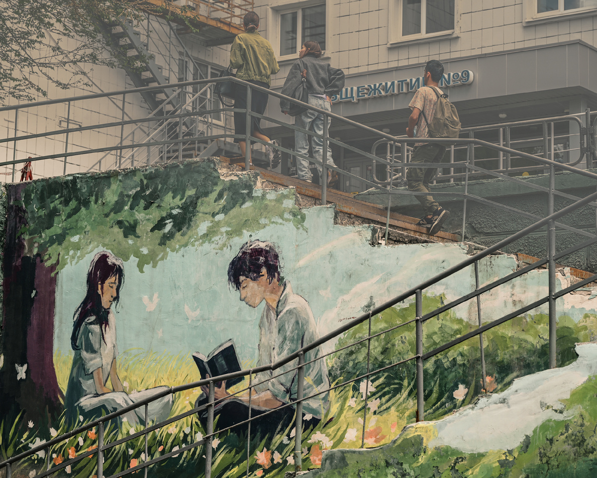 Идя по улице я всегда смотрю по сторонам в поисках интересного кадра. Так в одном из переулков увидел рисунок сидящих под деревом пары с книгой. Он был настолько хорош, что я не думая свернул в переулок, еще не понимая куда попал и что меня там ждет... Переулок шел к студенческому общежитию №9 Казанского Федерального Университета, но самым интересным оказалось не граффити пары под деревом, а выполненные в стиле аниме рисунки на стене вдоль переулка. Необычная для муралов и граффити стилистика, невероятным образом вписавшаяся в городскую среду и по-настоящему украсившая серую улицу. Тематика рисунков понятна — дорога к студенческому общежитию, поэтому должно быть либо безудержное веселье молодых ребят либо образование. Если с первым могли быть непонятки, то со вторым будет одобрение всех слоев населения, в том числе тех, кто еще помнит известный девиз: «Учиться, учиться и учиться!». Главное, что рисунки выполнены просто великолепно, как минимум по моему нескромному личному мнению. На вы