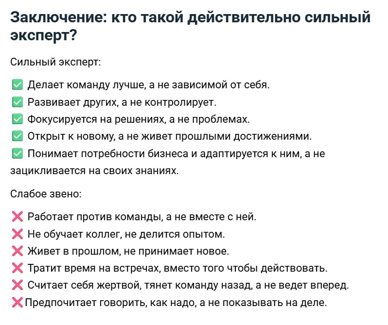 Однако роль опытного специалиста не ограничивается высоким уровнем знаний и навыков. Не менее важно, как этот человек делится своим опытом, как влияет на атмосферу в коллективе и как его подход воспринимается другими членами команды.