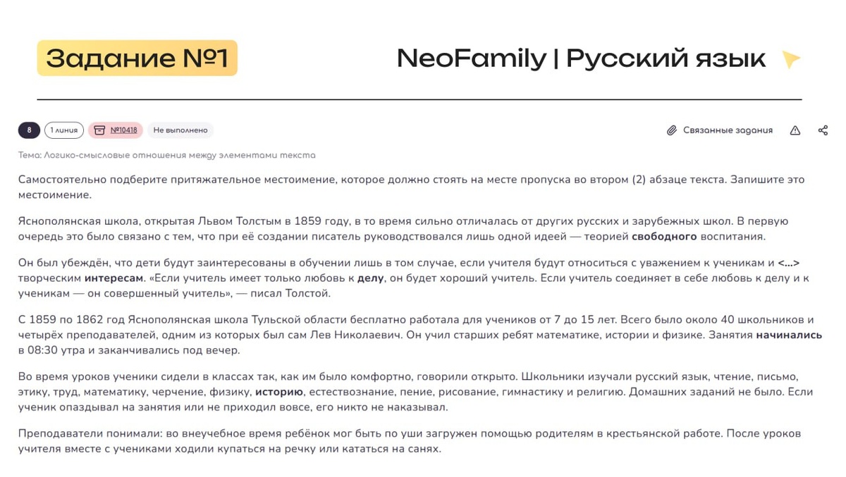 Подбери притяжательное местоимение, которое должно стоять на месте пропуска во втором (2) абзаце текста. Запиши это местоимение в комментариях 🧋