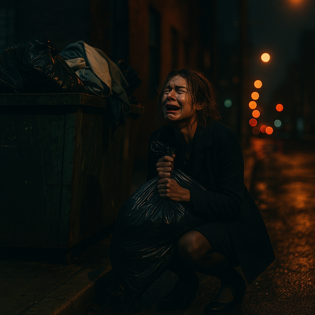 "Твои вещи у мусорки. Поторопись, пока бомжи не забрали."