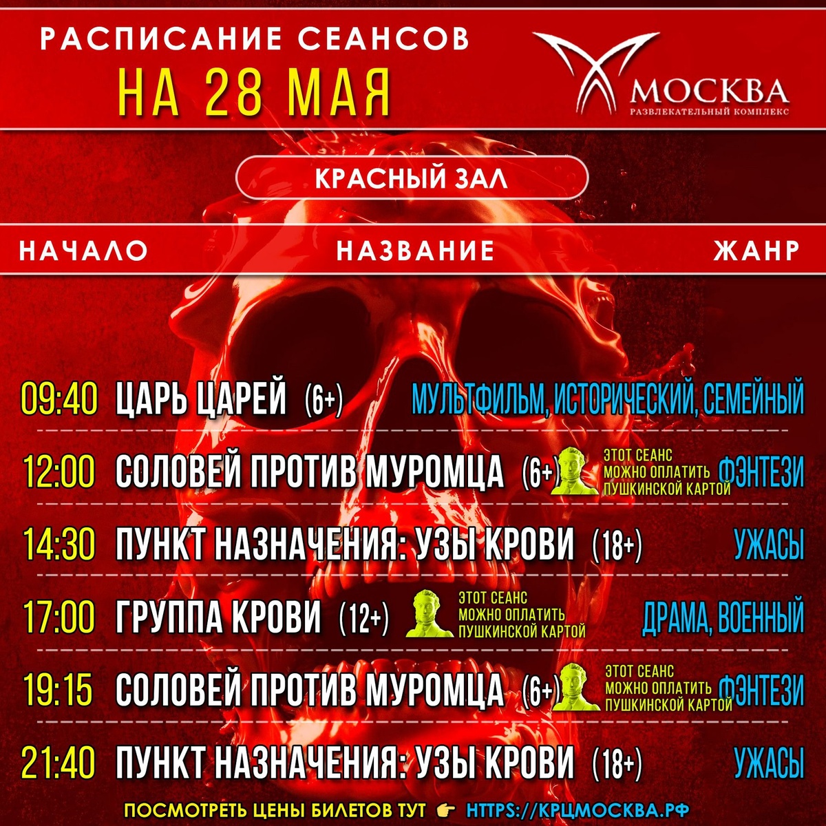 #расписание_сеансов на 28 мая «Соловей против Муромца» и «Группа крови» можно оплатить Пушкинской картой 💳 Посмотреть цену и купить билеты онлайн можно на нашем сайте https://крцмосква.рф/ и в приложении Google Play и App Store «Кинотеатр Москва, г. Каспийск» ▰▰▰▰▰▰▰▰▰▰▰▰▰▰▰▰▰ #купитьбилет #афиша #смотритевкино #крцмосква #каспийск #ценабилетов #кино #фильм #cinema #kaspiysk