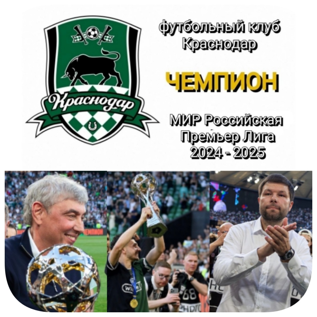 Футбольный клуб Краснодар набрав 67 очков за 30 туров МИР Российская Премьер Лига 2024 - 2025 года стал впервые Чемпионом обойдя прервав шестилетние чемпионства футбольного клуба Зенит .