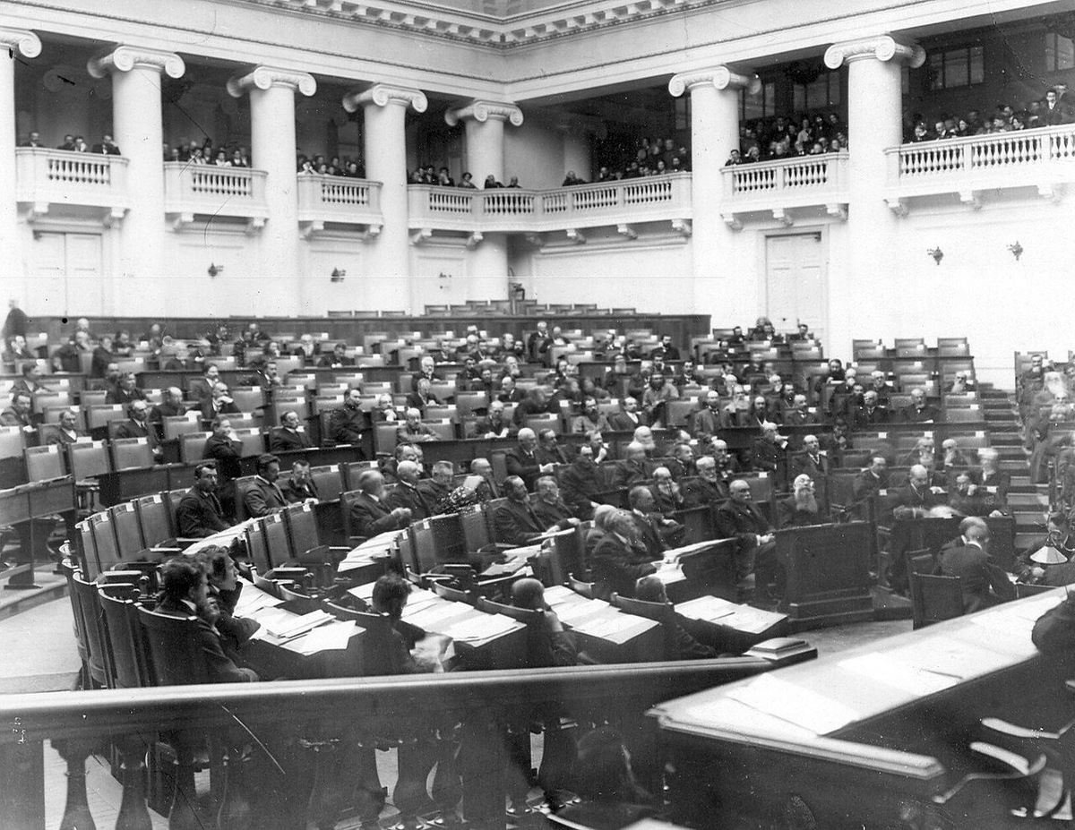 Выступает Ф. И. Родичев. Оратор критикует речь председателя совета министров П. А. Столыпина о земствах в шести западных губерниях. Он вспоминает эпоху 50-60 годов и говорит: