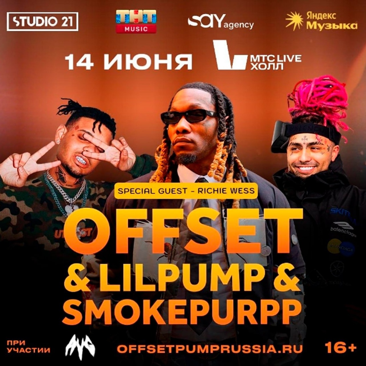 В ответ на пост ‼️ SMOKEPURPP ВЫСТУПИТ В МОСКВЕ 14 ИЮНЯ С OFFSET И LIL PUMP! На московском концерте Offset’а, который пройдёт 14 июня, на сцену выйдут сразу четыре западных артиста, включая самого Offset’а. К основному составу присоединился SmokePurpp, а специальным гостем станет Richie Wess. Ранее организаторы также сообщили, что Lil Pump заменит Toxi$ в лайнапе мероприятия. 💀 FML MATTERS
