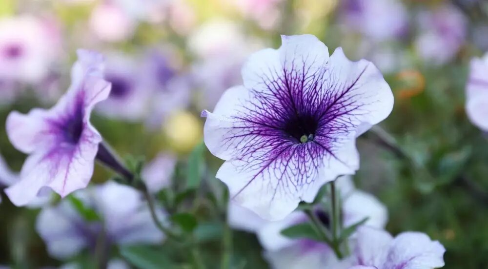 - Tidal Wave Silver – уникальная окраска, варьирующаяся от светлого серебра до пастельно-сиреневого. Цветки среднего размера (около 5 см), высота кустика не превышает 50 см. Очень популярен в миксбордерах.
