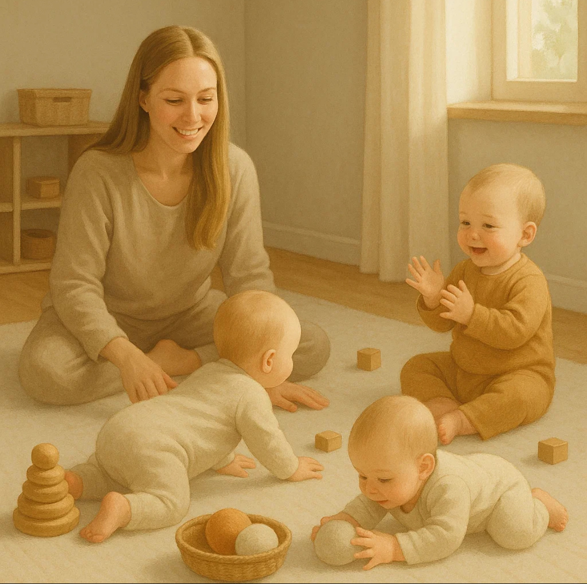Без покупок, подготовки и инвентаря — только вы, ребёнок и немного фантазии Недавно меня попросили придумать игры не только для бодрых тоддлеров, а для совсем маленьких — тех, кто ещё не бегает, но уже активно изучает мир. Я расчехлила наш семейный архив, заглянула в прошлое, где Ваня был ещё крошечным, и собрала 10 наших любимых двигательных игр для малышей от 3 месяцев до года. Все они: — не требуют покупок, — просты в подготовке, — и вызывают массу эмоций у ребёнка (и у мамы тоже). Берём лёгкий платочек или пелёнку, запускаем по воздуху и приговариваем: Ветер по морю гуляет, Ветер парус раздувает, Парус (имя малыша) накрывает! На слове «накрывает» — мягко опускаем платок на малыша. Проверено: каждый раз как впервые. Это не просто зарядка. Это ещё и живой окситоцин, тактильный и зрительный контакт, тёплые воспоминания для всех участников процесса. Ваня до сих пор улыбается, стоит мне только начать этот стишок. Малыш лежит на спинке, вы ритмично сгибаете его ножки в коленках, п
