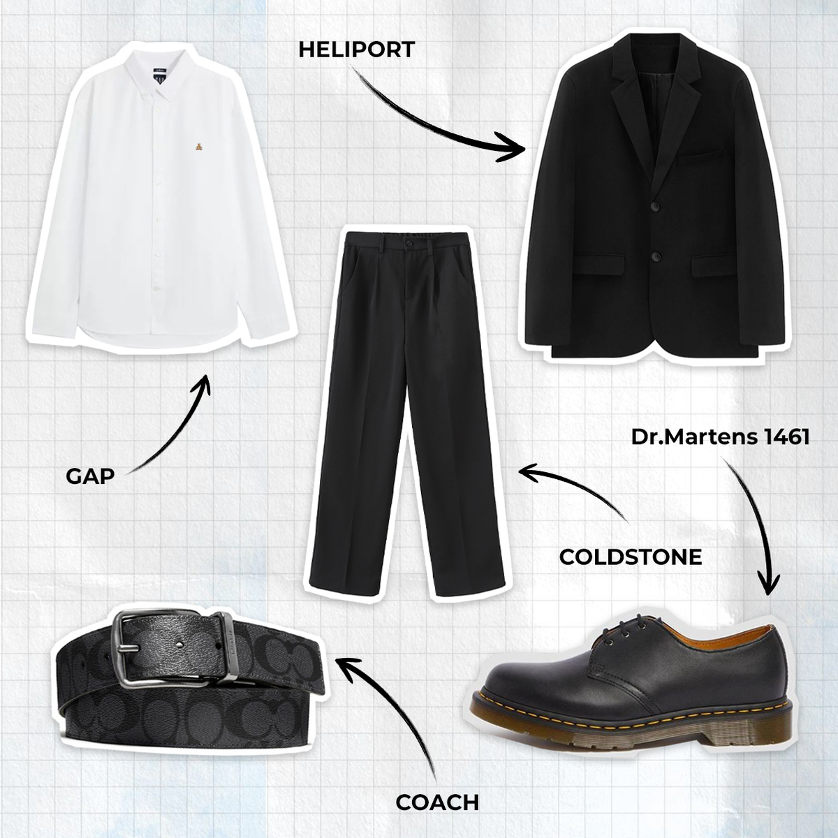 Если да, то мы нашли аутфит для парней в честь окончания школы. Простите, серого блестящего костюма на POIZON не оказалось. GAP, цена от 5 103₽* COLDSTONE, цена от 2 969₽* HELIPORT, цена от 5 088₽* COACH, цена от 13 516₽* Dr.Martens 1461, цена от 12 221₽* *стоимость может изменяться в зависимости от курса и размера Больше интересного на нашем сайте POIZON