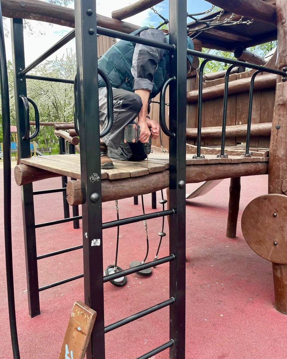И снова про детские площадки "Парки Берёзовского" рассказали, как обслуживают общественные детские площадки, которые подвергаются недетским испытаниям на прочность. Ведь ни для кого не секрет, что на качелях раскачиваются слишком сильно, на горках катаются не только дети, а лестницы выдерживают испытания, которые не предусмотрены конструкцией. Чаще всего на площадке ломаются: перекладины, опоры у качелей, детали у балансиров и пружинных качалок, а также соединительные элементы (болты, крепления и т.д.). Поломка во время эксплуатации это серьезный риск безопасности, поэтому каждую неделю специалист "Парков" осматривают оборудование и фиксируют даже мелкие поломки, чтобы устранить их до того, как они станут опасными. Вчера, например, были заменены ослабленные болты, укреплены подвижные части и опоры. Также парковцы просят: если заметили, что что-то сломано, не проходите мимо и сообщайте им. Безопасность общественных зон города - наша общая задача. Всё, чтобы наши дети сполна наслажда