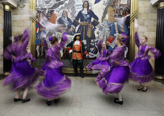 На станции «Адмиралтейская» пассажиры метрополитена 24 мая увидели необычные указатели, выполненные в стиле старославянской письменности. В пресс-службе Комитета по транспорту Санкт-Петербурга сообщили, что это часть совместной акции метрополитена и СПбГУ, приуроченной к празднованию Дня города и Дня славянской письменности. Специалисты филологического факультета университета подготовили специальные таблички, переведя современные указатели на древнерусский язык. Например, устройство контроля прохода в тоннель получило описание в духе старинных текстов. В рамках мероприятия пассажиры смогли пообщаться с актером, изображавшего Петра I, а также увидели выступление детского хореографического коллектива «Эванте» с народными танцами. Отмечается, что такая акция проводится уже второй год подряд и уже стала доброй традицией. В прошлом году необычное оформление станции также вызвало большой интерес не только у горожан, но и гостей города. Читайте на Peterburg2