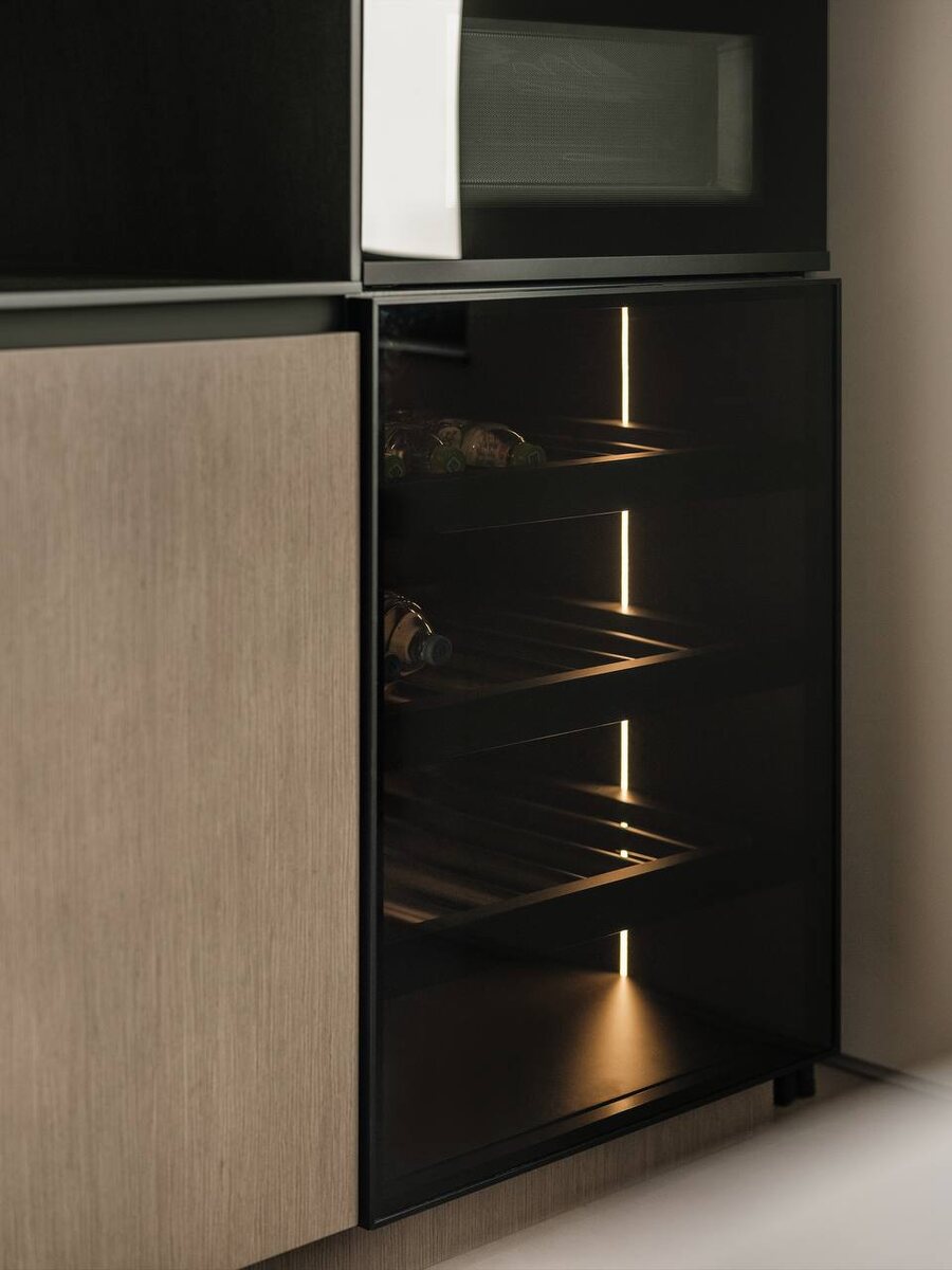 ТОП-5 интерьерных решений для хранения вина, которые заказывают в премиальных проектах 🍾🥂 Делимся современными мебельными решениями для хранения вина и алкоголя, которые стоит предусмотреть на этапе проектирования интерьера. 1️⃣Интеграция в кухню Винные модули идеально сочетаются с кухнями — эстетика, лаконичность и чёткая логика хранения. Можно предусмотреть мини-бар в острове или нижней базе шкафов. 2️⃣Скрытая винная ниша Встроена в кухонный гарнитур. Выдвигается, трансформируется, открывается по нажатию, на голосовом управлении или со смартфона — в зависимости от выбранного механизма добиваемся максимального WOW-эффекта. 3️⃣Барный шкаф Изготовленный по размерам проекта, с отделкой в шпоне, металле или лаке. Эстетичный, с подсветкой и фурнитурой премиум-класса — украшение гостиной или кабинета. 4️⃣Отдельная винная комната Личный винный архив: с открытые или закрытые стеллажи с витринным стеклом, системой хранения и мягкой подсветкой. Такая комната повышает статус проекта и вос