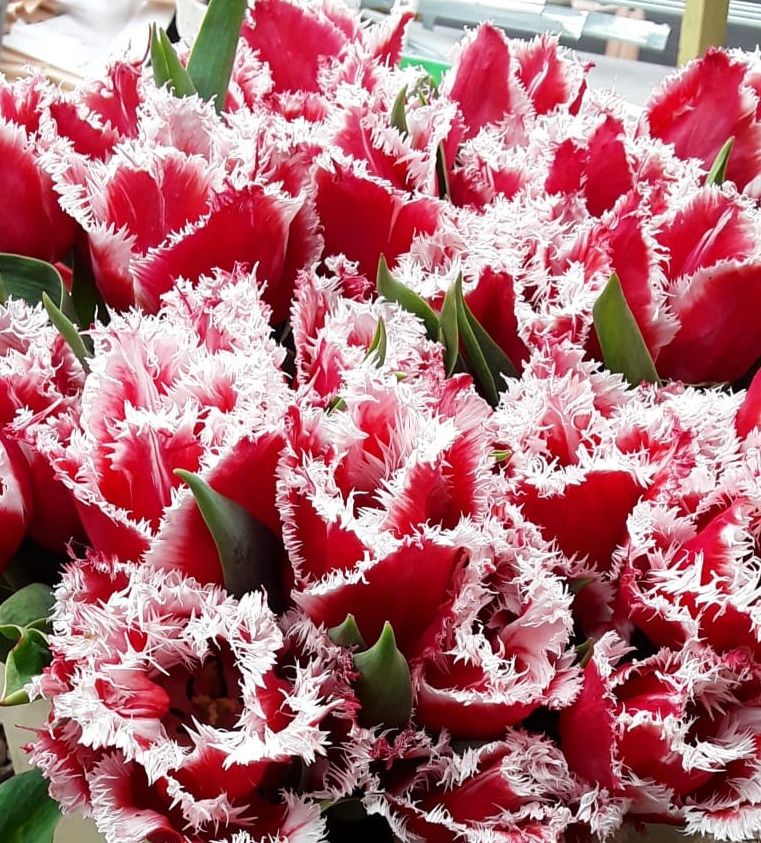 Здравствуйте, уважаемые читатели! Я Елена, живу на юге России и не сижу на месте, живя по принципу : " Под лежачий камень вода не течет" Я занимаюсь тем, что мне нравится и что мне приносить вдохновение, радость и результат. Тюльпаны- мое хобби! Тюльпаны вестники весны! Красивые , яркие, эмоционально воспринимаются и с восхщением остаются надолго в нашем сознании. Это сорт Нью-Санта. Первое фото . Мое. Один из любимых моих сортов. 8 марта -праздник женской половинки нашего общества. И в этот день в приоритете на продаже тюльпаны. Их покупают по 3 штуки, чисто символический подарок из цветов, их покупают и по 101 штуки в одном букете, который смотрится роскошно. Метод собственных идей: маленькие ящики, стружка сосновая, немного песка, мела и посадка в количестве 40 штук на 1 ящик. Я не затрачиваюсь на луковицу из Голландии по цене от 35 до 50 рублей за штуку. Я не продаю ни на мелкий , ни на крупный опт. .У меня место реализации- это мой сельский рынок. Фото 1 мар