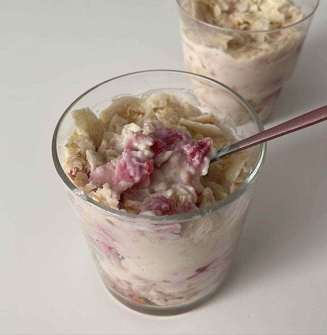 КБЖУ на 100 гр: 122/4,4/4,2/15,8 🍰лаваш -45 г Для заварного крема: 🍰яичный желток -1 шт ⠀⠀ 🍰кукур крахмал - 15г⠀ 🍰молоко-250 мл ⠀⠀ 🍰подсластитель - 3-4 г 🍰малина - 50 г ✅лаваш нарезать на мелкие кусочки и обжарить на сухой сковороде до хруста ✅желток, кукур крахмал, молоко, и сахзам перемешать, чтобы не было комочков, поставить на плиту и варить, постоянно помешивая до загустения, дать остыть ✅на дно стакана выложить кусочки лаваша, затем крем, малину и так до самого конца, сверху посыпать лавашом, оставить на ночь для пропитки