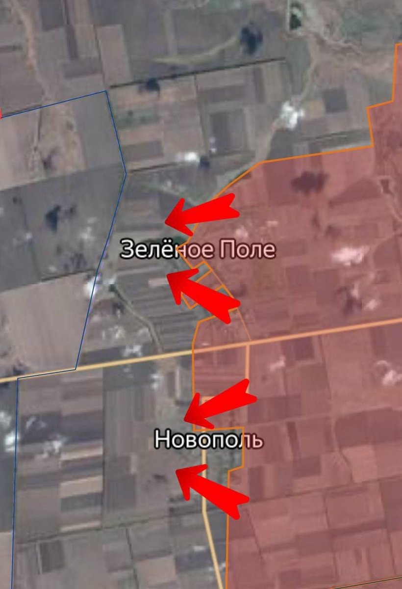 Аналогичная картина в Новополе — там ВС РФ также берут вражескую группировку в клещи, не давая шансов на спасение.