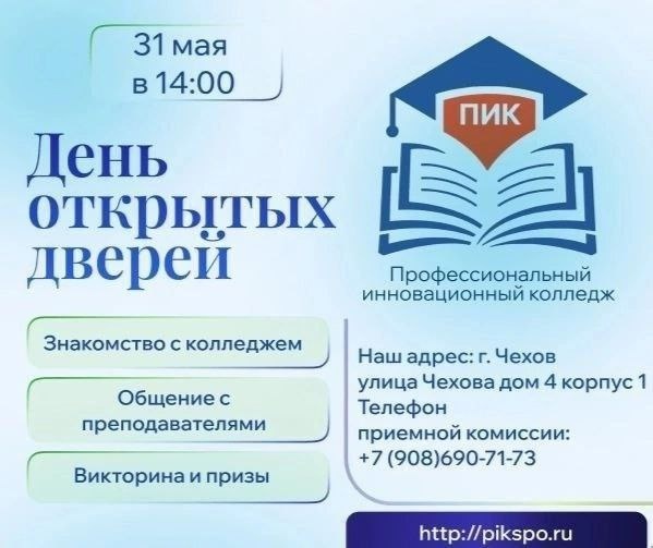 Приглашаем на день открытых дверей в Профессиональный инновационный колледж 31 мая в 14:00