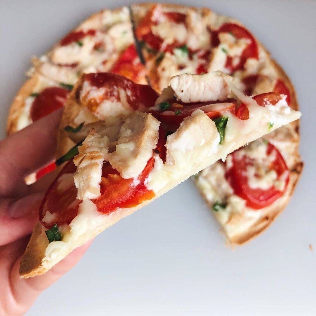 КБЖУ на 100гр: 159/9/9/9 🍕лепёшка Mission-43г 🍕грудка индейки вареная-60г 🍕сыр мягкий Каймак-35г 🍕помидор-85г 🍕сыр 16%-20г 🍕зелёный лук ✅лепёшку смазать мягкий сыром ✅выложить помидоры, мясо и зелёный лук ✅сверху посыпать тертым сыром ✅отправить в разогретую до 210град духовку на 10-12мин