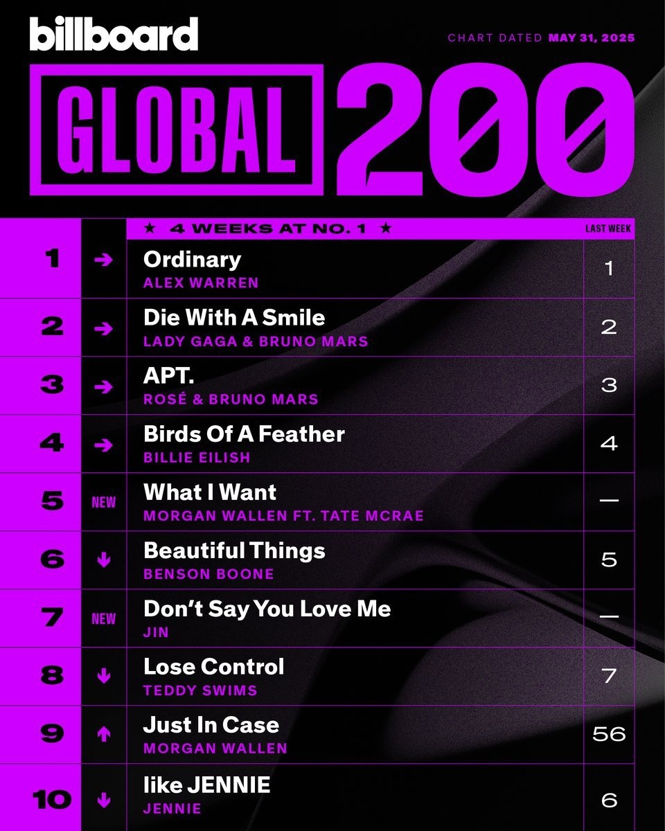 🍊 "Don't Say You Love Me" дебютирует в Топ-10 чартов Billboard Global 200 и Global Excl. US, занимая 7 и 5 места!