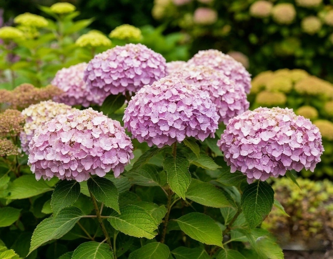 Гортензии известны своими яркими цветами, которые могут варьироваться от розового до синего в зависимости от уровня pH почвы. Чтобы получить синие цветы, необходимо подкислить почву, что делает гортензии отличным примером кислолюбивых растений.