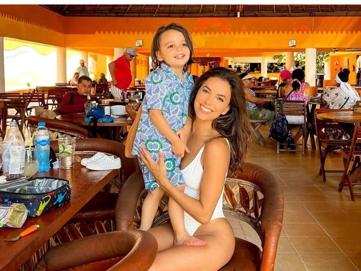 19 июня 2018 года у пары родился сын Сантьяго. На тот момент его звёздной маме было 43 года. Звезда «Отчаянных домохозяек» не скрывает сына от прессы и фанатов и время от времени выходит с подросшим Санти на красную дорожку. Но недавно Ева и её супруг объявили, что переедут жить в Испанию. Им кажется, что Голливуд не лучшее место для их семьи и, в частности, для шестилетнего Сантьяго.