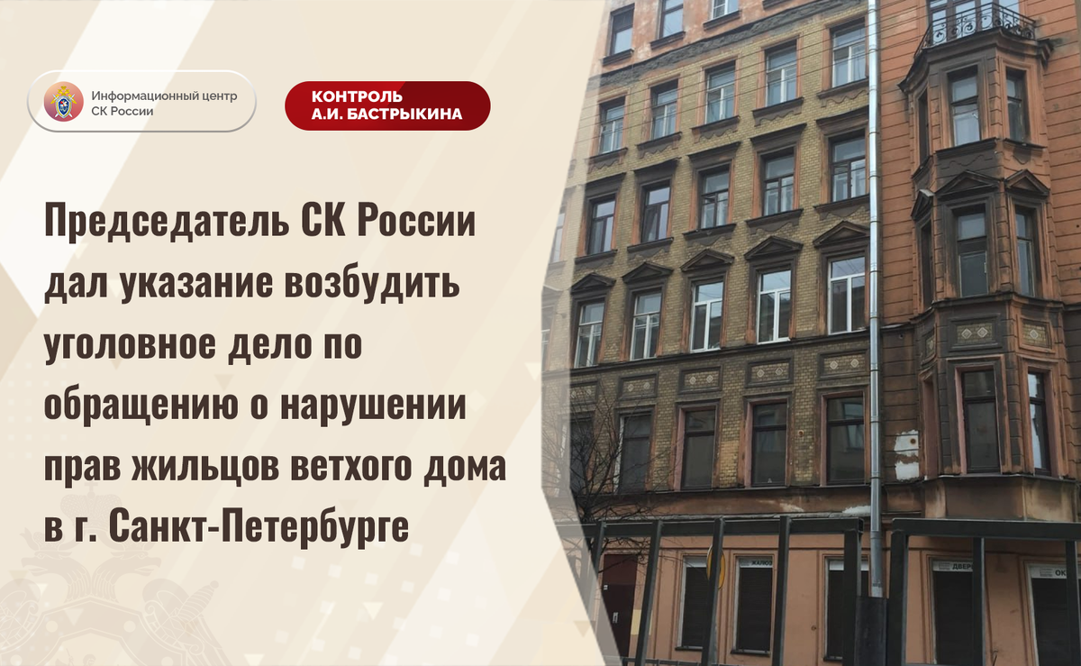 Председатель СК России дал указание возбудить уголовное дело по обращению о нарушении прав жильцов ветхого дома в г. Санкт-Петербурге