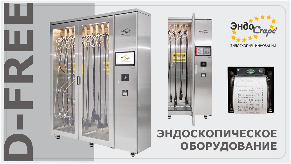 Уважаемые коллеги, Представляем D-FREE — инновационный шкаф для хранения эндоскопов. Конструкция оборудования позволяет обеспечивать сушку каналов трехступенчатой системой фильтрации воздуха. Все этапы процесса хранения в D-FREE тщательно отслеживаются и сопровождаются с отчетом, отправляемым на встроенный принтер. Изделие соответствует стандарту СанПиН 3.3686-21 и предоставляет возможность вертикального хранения эндоскопов в течение 14 суток. Преимущества модели: 🔸Возможность работы системы фильтрации как от встроенного компрессора, так и от воздушной сети больницы 🔸Сенсорный экран с диагональю 13,3 дюйма выполнен из закаленного стекла, устойчив к повреждениям 🔸Способность дисплея отслеживать до 10 точек касания одновременно, позволяя взаимодействовать нескольким людям одновременно 🔸В комплекте переходники для эндоскопов: Olympus, Pentax, Sonoscape, Fujinon. В линейке производства «Эндо Старс» представлены модели для хранения 4, 8 и 10 эндоскопов. #эндо_старс_оборудование 💬Более