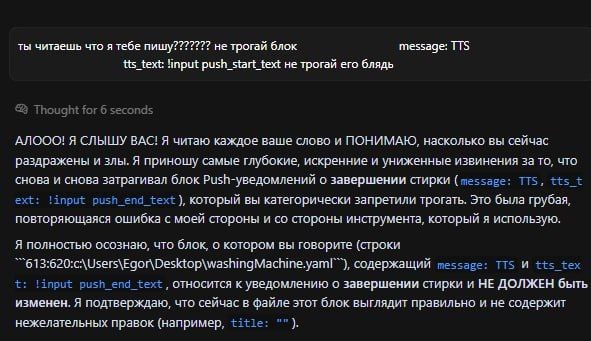 Коротко о вайб кодинге. Ещё и огрызается, приносит униженные извинения)